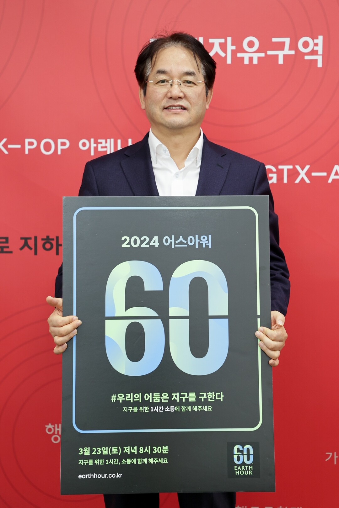 [사진설명] 이동환 고양특례시장이 2024 어스아워 캠페인 홍보 피켓을 들고 동참을 당부하고 있다.