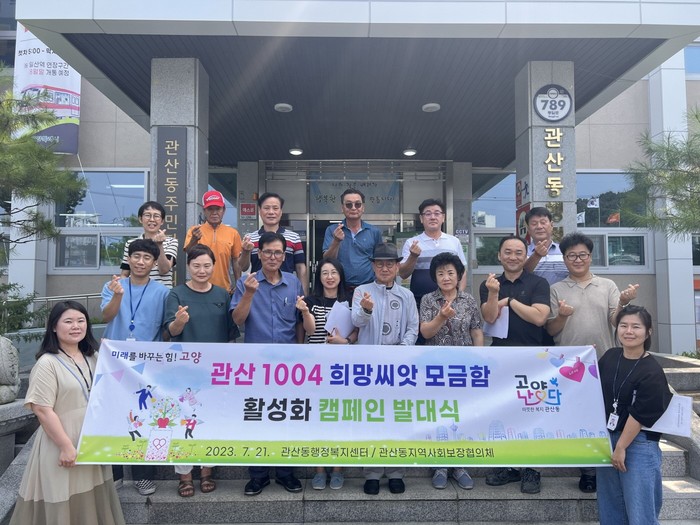[부자동네타임즈 김인수기자] 고양특례시 관산동 지역사회보장협의체는 지난 21일 ‘관산 1004 희망씨앗 모금함 캠페인’ 발대식을 개최했다.