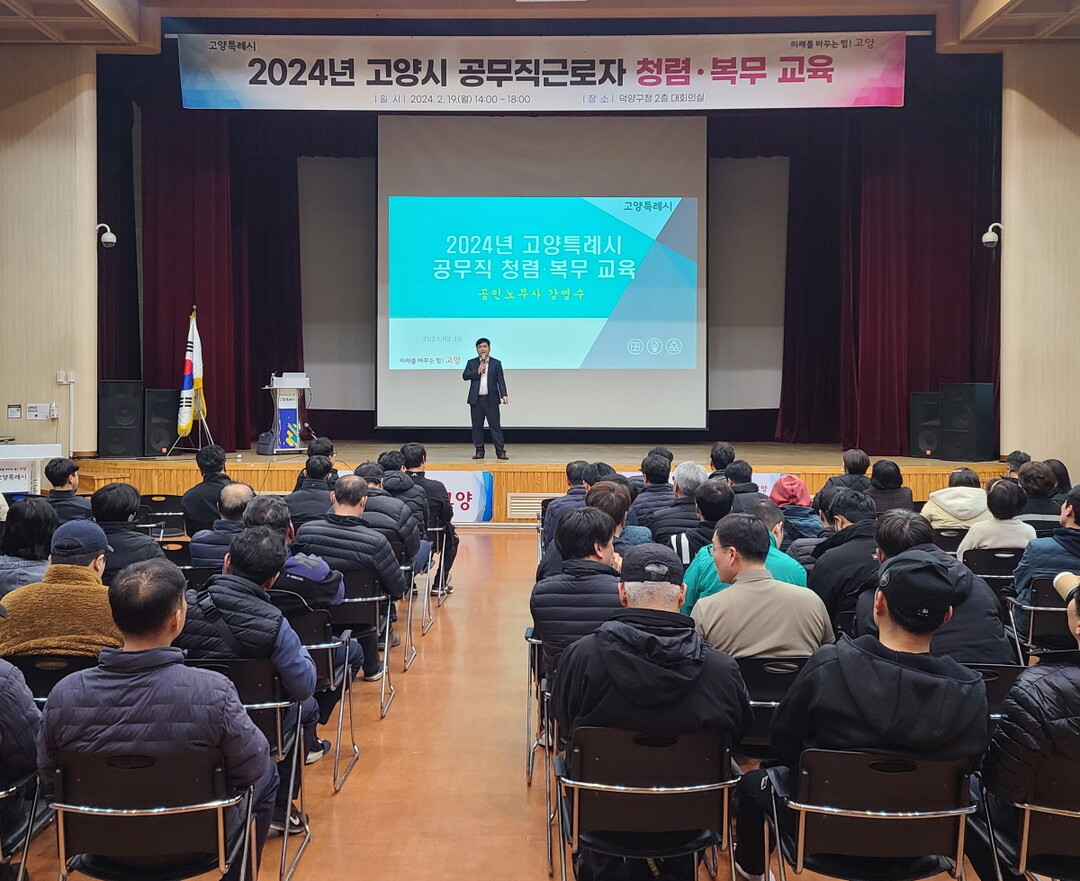 [부자동네타임즈 = 김인수 기자] 고양특례시는 지난 19일 공무직근로자를 대상으로 ‘2024년 고양시 공무직근로자 청렴·복무교육'을 실시했다.