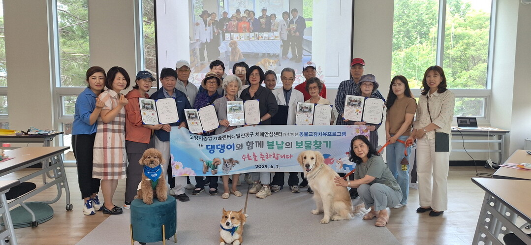 [부자동네타임즈 = 김인수 기자] 고양특례시 일산동구보건소 치매안심센터는 동물교감치료를 적용한 치매가족 힐링 프로그램「댕댕이와 함께 봄날의 보물찾기」상반기 운영을 종료하고 수료식을 진행했다고 밝혔다.