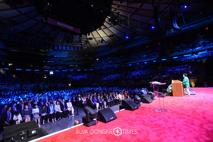 가정연합은 15일(현지시간) 오후 3시 미국 뉴욕 '매디슨 스퀘어 가든'에서 '평화는 '나'로부터 시작: 문화권의 분열에 대한 현대적 해법(Peace starts with me: A modern solution to our divided culture)'을 주제로 '매디슨 스퀘어 가든 특별 평화집회를 열었다.