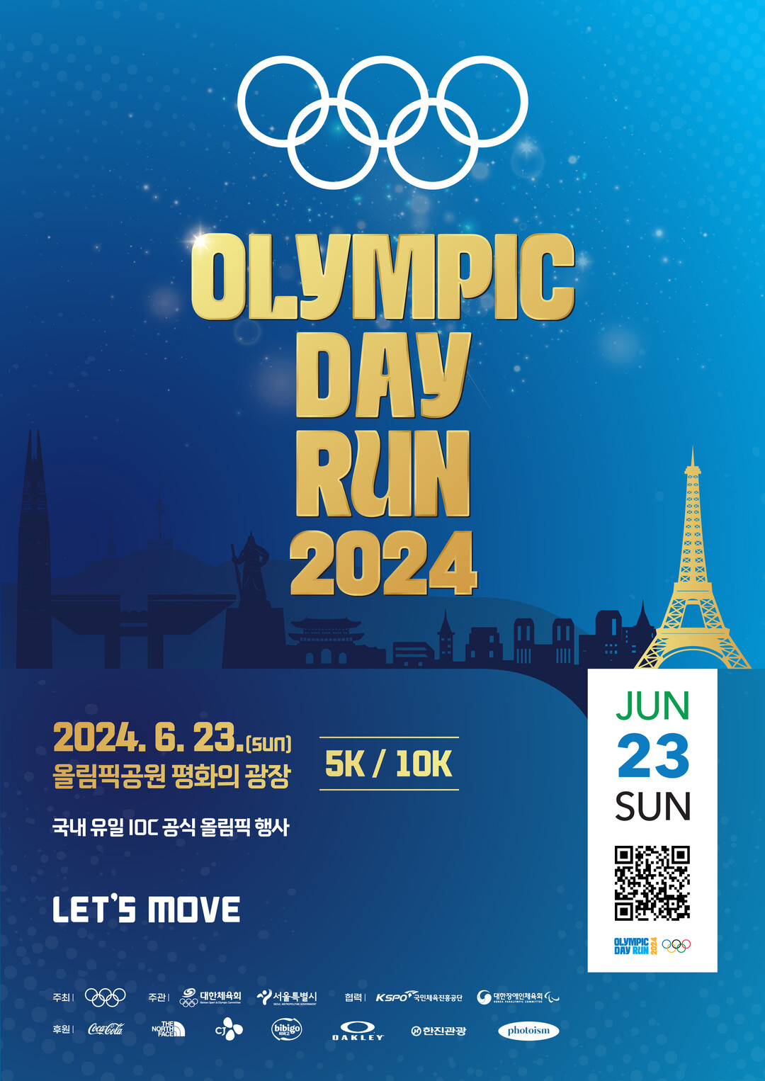올해 행사는 작년과 마찬가지로 ‘Let’s Move’라는 주제를 바탕으로, ‘우리 삶을 즐겁게 하는 운동을 함께하자’는 올림픽 운동의 일환으로서 다양한 운동을 경험해볼 수 있는 스포츠 축제로 펼쳐질 예정이다. 서울 올림픽공원 일대 마라톤(5㎞/10㎞) 대회 외에도 ▲스포츠 종목 체험 ▲올림픽 스타가 참여하는 팬 사인회 ▲국대스마터즈 이벤트 ▲다양한 후원사 이벤트 ▲특별한 게스트와 함께하는 애프터 파티 등이 마련되어 있다.