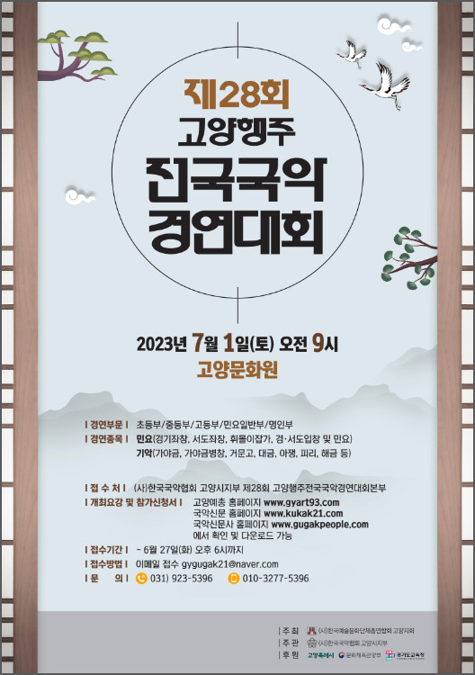 시 관계자는 “이번 대회가 우수한 국악인을 발굴 및 자긍심을 고취 시키는 동시에 문화도시로서의 고양특례시를 널리 알리는 계기가 되길 바란다.”고 전했다.