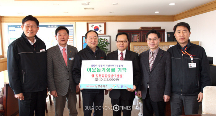 [부자동네타임즈 백수연 기자]㈜삼양옵틱스 황충현 대표이사는 1월 26일 창원시청을 방문해 임원과 직원들이 모금한 성금 1061만2천원을 관내 소년소년가장들을 위해 써 달라며 정구창 제1부시장에게 기탁했다.
