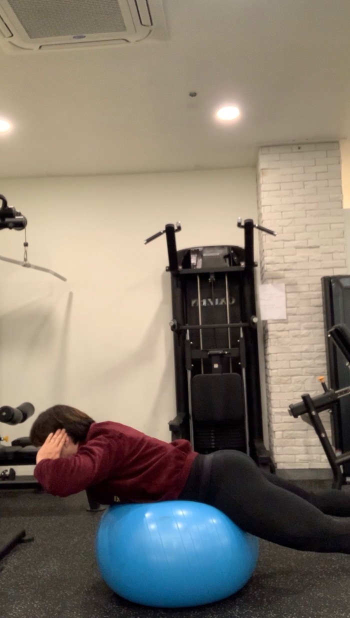훈련1)짐볼플랭크 30s ㅡ10s휴식 ㅡ 짐볼 백익스텐션 20회 = 1세트 (총 4세트 진행)