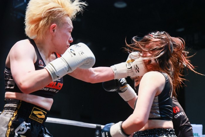 -57kg 여성부의 최은지 선수와 아베마리아 선수의 한일전은 1라운드부터 시종일관 강력한 난타전이 펼쳐서 관중들을 뜨겁게 달아오르게했다. 두 선수의 적극적인 펀치와 니킥 공방이 3라운드까지 이어졌으나, 유효타에서 조금씩 앞서 나가던 최은지 선수가 끝내 3라운드 판정승을 거두었다. 최은지 선수는 “지난번 대만 시합 이후로 한층 더 성장한듯하다. 그 결과물을 보여줄 수 있었던 경기였던 거 같다. 이제 챔피언까지 한걸음이다. 고지가 보인다”며 승리의 소감을 전했다.
