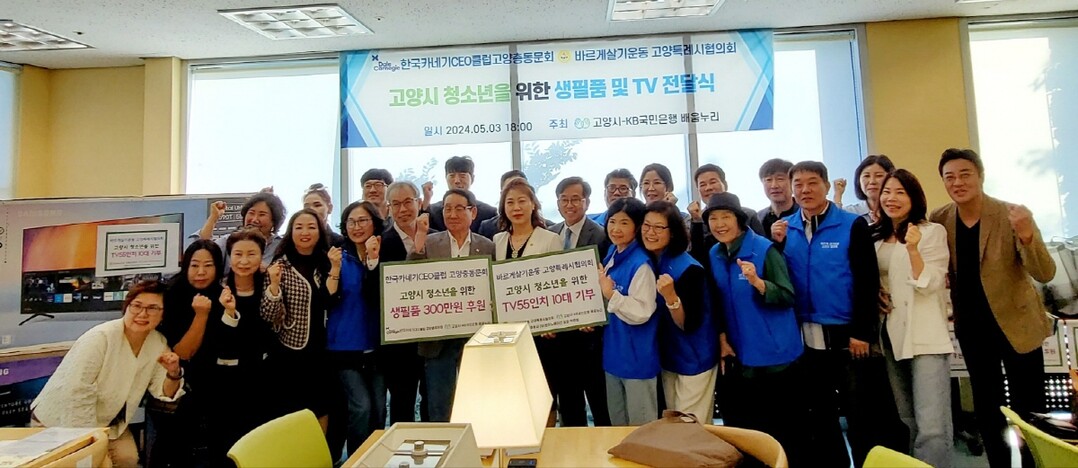 [부자동네타임즈 = 김인수 기자] 고양시-케이비(KB)국민은행 배움누리(이하 배움누리)는 지난 5월 3일 한국카네기CEO 고양총동문회로부터 청소년들을 위한 총 300만원 상당의 생필품을 지원받았다.