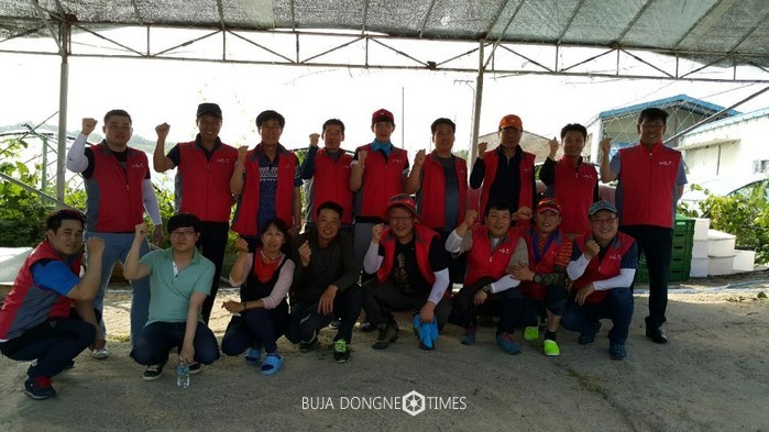 첫 번째 봉사활동은 지난 6월 22일(목), 경기도 안성시 서운면 포도농가에서 실시됐다. 임직원 40여명이 참여했으며, 이들은 폭염특보에도 아랑곳없이 정성들여 포도 알을 솎아냈다.