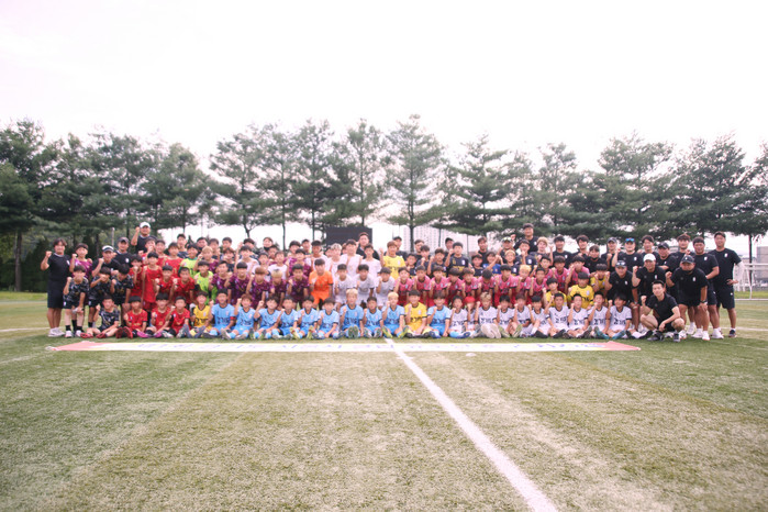 [사진설명] 축구 지도자와 서울시 U-12 상비군과 경기도 U-12 상비군 선수들이 단체 사진을 찍고 있다.