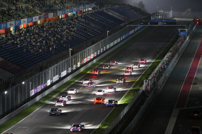 [사진설명] 2021 CJ대한통운 슈퍼레이스 챔피언십 2라운드 나이트 레이스 주행 장면.