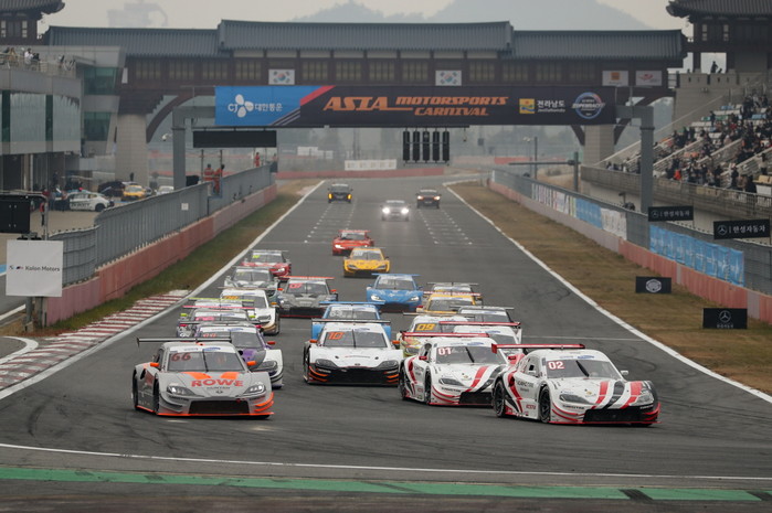 [사진설명] 2021 CJ대한통운 슈퍼레이스 챔피언십 8라운드 슈퍼 6000 클래스 스타트 장면.