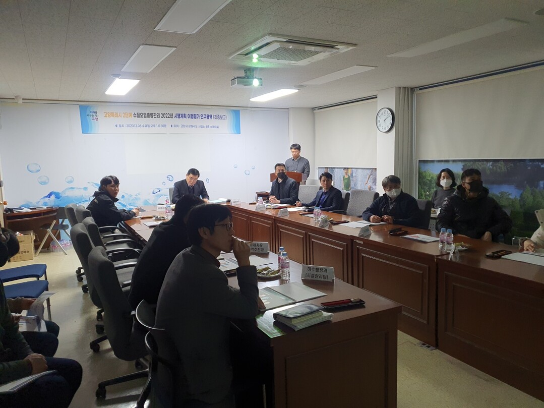 [부자동네타임즈 = 김인수 기자] 지난 6일 상하수도사업소 소회의실에서 김수오 푸른도시사업소장 주재로 고양시 ‘2단계 수질오염총량관리’ 시행계획에 대한 2022년도 이행평가 최종보고회를 실시했다.