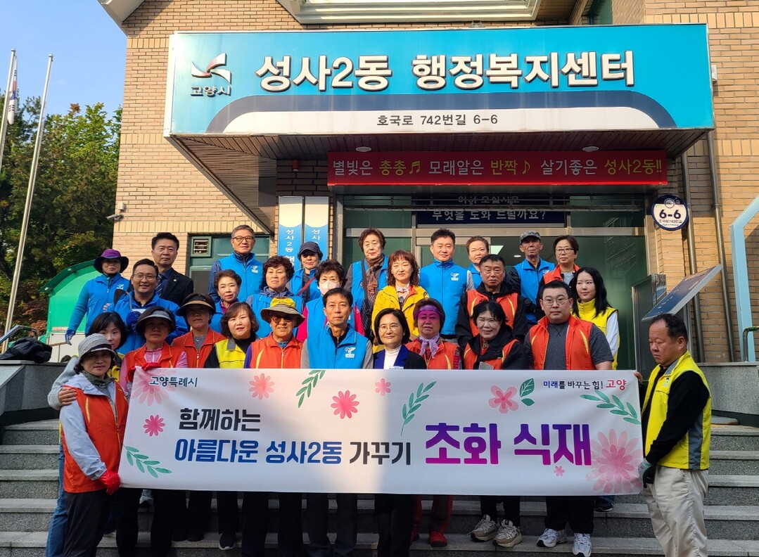 [부자동네타임즈 = 김인수 기자] 고양특례시 성사2동 행정복지센터는 지난 24일 쾌적하고 아름다운 마을 가꾸기를 위한 ‘가을맞이 국화 심기’행사를 실시했다.