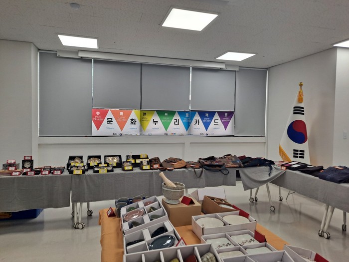 문화누리장터는 문화누리카드 이용 정보가 부족한 지역 어르신을 대상으로 장인, 무형문화재, 공예작가들이 제작하는 수공예문화상품을 전시하는 자리로 현장에서 견본을 보고 문화누리카드로 구매하면 무료로 집으로 배송된다.