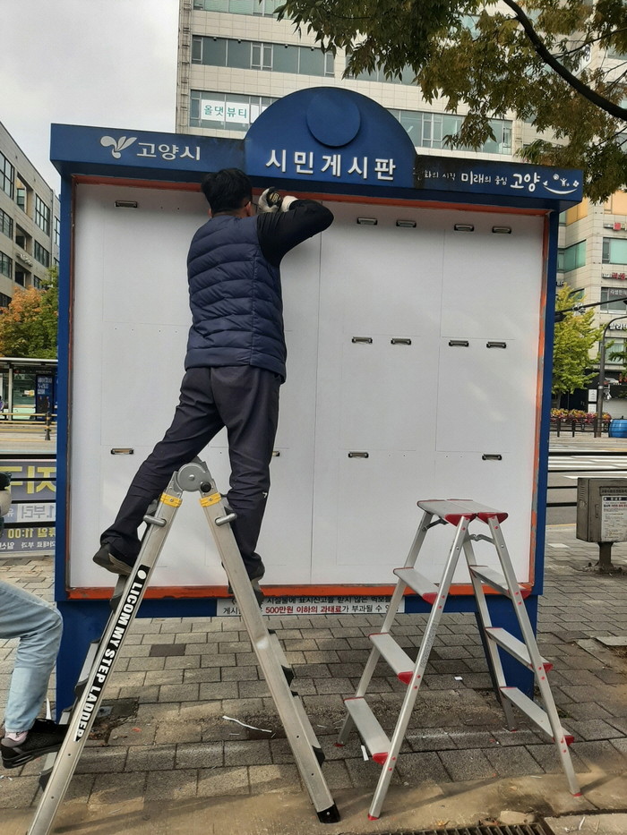 [부자동네타임즈 김인수기자] 고양특례시 일산동구(구청장 방경돈)에서는 시민게시판 시설에 대한 유지보수를 이달 24일까지 완료 예정으로 진행하고 있다.