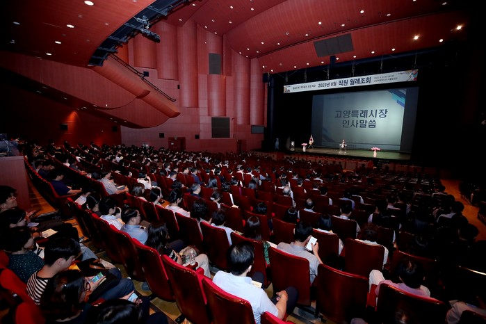 [부자동네타임즈 김인수기자] 고양어울림누리 어울림극장에서 고양시장, 제1·2부시장, 간부공무원, 직원, 동 직능단체 등 1,000여명이 참석한 가운데 8월 직원 월례조회를 개최했다.