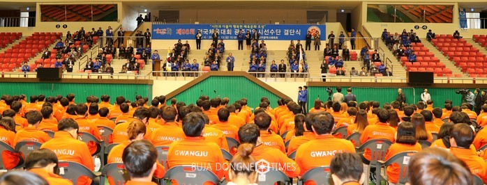 | △'제98회 전국체육대회광주광역시선수단 결단식에 참석한 광주선수단 1344명은 45개 종목에 출전해 전국체전 최대 메달을 목표로 뛰게 된다 |