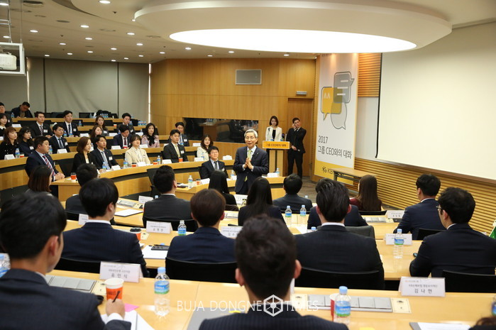 이날 행사는 전 계열사 공모를 거쳐 새롭게 기자단으로 선발된 직원과 지난 1년간 기자단으로 활동한 직원 등 총 60여명의 대표 직원들이 참가해 도시락으로 오찬을 함께하며, 윤 회장의 경영철학과 KB금융그룹의 비전, KB의 현안에 대해 공유하는 시간이었다. 기자단이라는 이름에 걸맞게 내년도 경영전략 등에 대한 날카로운 질문부터CEO의 개인적인 취향에 관한 질문까지 이날 행사는 열띤 분위기에서 허심탄회하게 진행되었다.