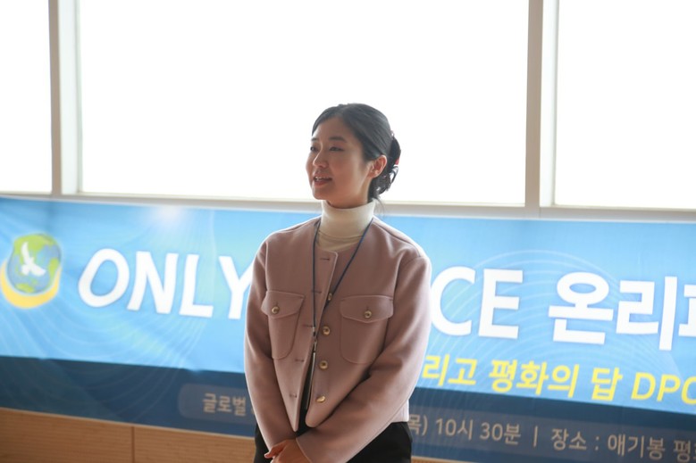김은희 글로벌국장은 "분단된 우리나라의 현실을 직접 눈으로 바라보니 평화의 필요성이 더 느껴진다. 어떠한 이유에서도 사람의 목숨을 희생시키는 폭력은 용납될 수 없다. ‘DPCW’(지구촌 전쟁종식 평화선언문)는 전쟁의 원인을 해소해 전쟁 발발을 억제하는 동시에 전쟁종식 이후 전 세계가 이를 지속하도록 하는 후속조치까지 언급되어 있는 획기적이고 분명한 평화의 답이다. 평화를 사랑하는 모든 여성들과 협력하여 DPCW가 국제법으로 제정될 수 있도록 모든 노력을 다하자.“라고 인사말을 전했다.