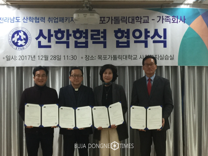 목포가톨릭대학교(총장 이재술)는 12월 28일(목) 사회복지실습실에서 가족회사 5개 기관과 산학협력 협약식을 가졌다.