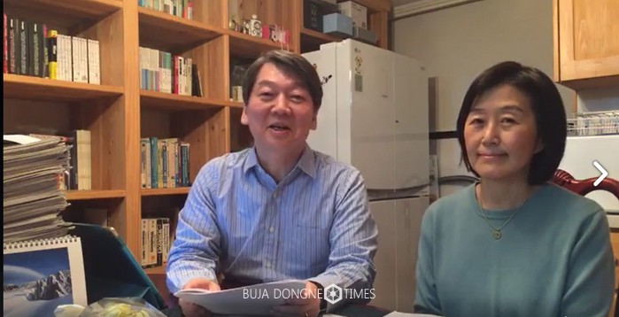 안철수 전 국민의당 상임공동대표는 29일 오후 부인 김미경 서울대 의대 교수와 함께 자신의 사회관계망서비스(SNS) 페이스북을 통해 '안철수 김미경 부부 설날맞이 올댓글토크'를 진행, 시민들과 소통했다. 사진은 시민들과 이야기를 나누고 있는 안 전 대표 부부. 2017.01.29 (사진 = 안 전 대표 페이스북 갈무리)