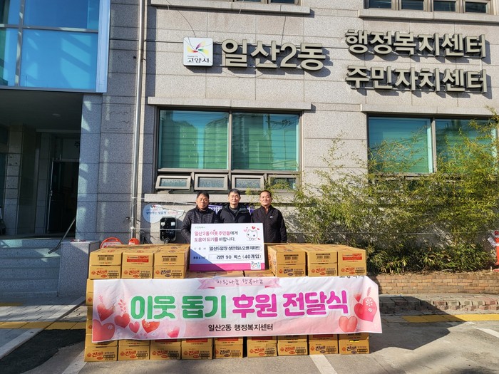 백진규 일산2동장은 “어려운 시기에도 소외된 이웃들을 잊지 않고 챙기는 따뜻한 나눔 활동에 감사드리며 어려운 이웃들에게 잘 전달되도록 하겠다.”고 말했다.