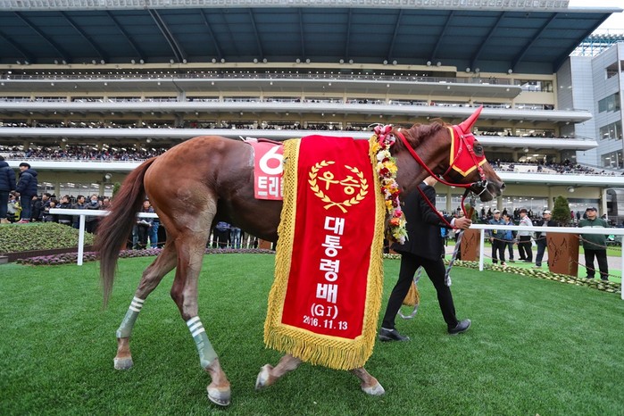 그런데 올해는 과거와 달리, 연초부터 두바이월드컵을 앞두고 국내 경마계가 크게 술렁이고 있다. ‘트리플나인’, ‘파워블레이드’, ‘디퍼런트디멘션’, ‘서울불릿’, ‘메인스테이’ 등 이름만으로 국내 경마 판을 좌우하는 최고의 경주마들이 출사표를 던졌기 때문이다. 이중에서도 단연 눈에 띄는 건 ‘트리플나인’. 올해까지 2년 연속 연도대표마를 차지한 한국경마의 간판스타다.