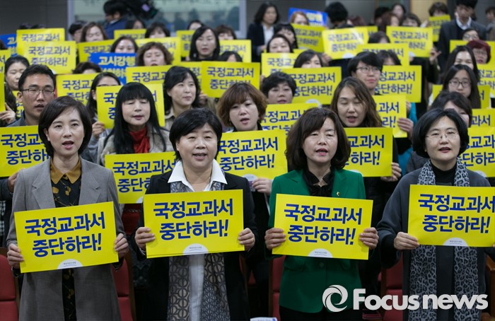 | △ "국정교과서 중단 촉구합니다" |