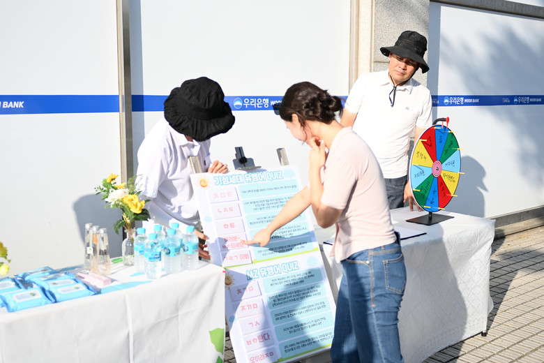 ▲지난달 31일, 김포 사우동 언어소통 캠페인 현장에서 세대차이 퀴즈를 푸는 시민 참여자의 모습