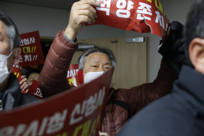 [부자동네타임즈 김인수기자] 금일 고양시 덕양구청 대회의 실에서 시청사 이전과 원당재창조, 경제자유구역 지정을 통한 자족도시 도약이란 주제로 제31회 고양시정포럼 (시정현안 설명회)를 개최하려 했으나 청사이전에 반대하는 지역주민과 신청사존치위원회의 거센 시위와 반발로 무산되었다.