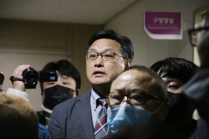 [사진설명] 이정형 제2부시장이 구청장실에서 나와 시민들에게 답변을 하고 있다.