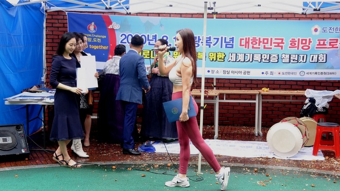 [부자동네타임즈 김인수기자] 도전한국인본부는 지난 8월15일 잠실 아시아 공원에서 8.15 광복기념및 코로나19 위기 조기 종식을 위한 세계기록인증 챌린지(Challenge)대회를 개최했다.