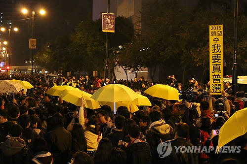 홍콩 시민과 학생들은 2017년 홍콩 행정장관 선거 입후보자의 자격을 제한한 중국 전국인민대표대회(전인대)의 선거안에 반대해 작년 9월 28일부터 '우산혁명'으로불린 도심 점거 시위를 벌이다가 12월 15일 경찰의 강제 진압으로 해산했다.