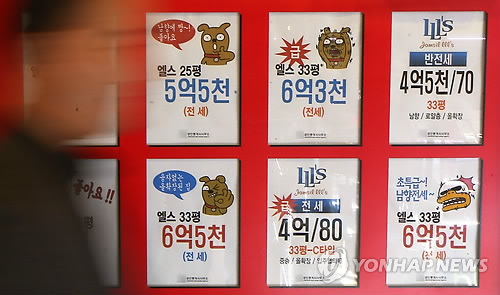 | △ 지난달 25일 서울의 한 부동산중개업소 아파트 전세매물 안내판의 모습. |