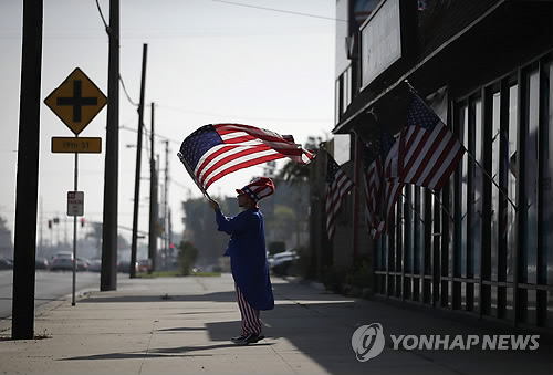| △ 美하원 오바마케어 폐지법안 통과 (AP=연합뉴스) 미국 공화당이 장악한 하원이 3일(현지시간) 전체회의를 열어 '오바마케어'(건강보험개혁법) 폐지 법안을 찬성 239표, 반대 186표로 통과시켰다. 사진은 오는 15일 금년도 오바마케어 가입 접수 마감을 앞두고 이날 미국 캘리포니아주 웨스트민스터의 오바마케어 등록센터 앞에서 한 남성이 미 정부를 뜻하는 '엉클 샘' 복장으로 성조기를 들고 있는 모습. |
