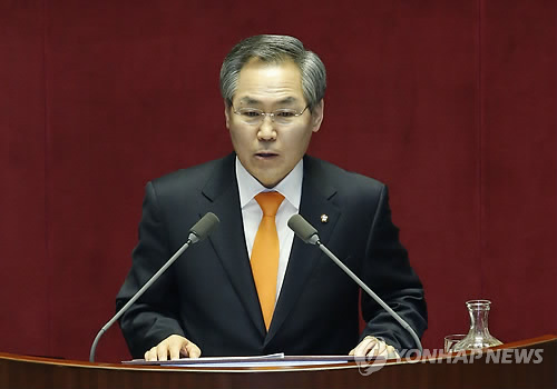 | △ 교섭단체 대표연설하는 우윤근 (서울=연합뉴스) 이상학 기자 = 새정치민주연합 우윤근 원내대표가 4일 오전 국회 본회의에서 교섭단체 대표연설을 하고 있다. |