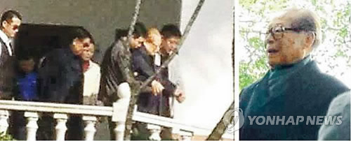 | △ 장쩌민 새해에도 건재 과시…하이난 명산 방문 (홍콩=연합뉴스) 최현석 특파원 = 장쩌민(江澤民·88) 전 중국 국가주석이 3일(현지시간) 부인 왕예핑(王冶坪) 등 가족과 함께 하이난(海南)성의 유명산인 둥산링(東山嶺)에서 산행하는 모습이 담긴 사진이 모바일 메신저인 웨이신(微信·위챗)에 게재됐다고 중화권 언론이 4일 보도했다. << 명보(明報) 캡처 >> 2015.1.4 harrison@yna.co.kr |
