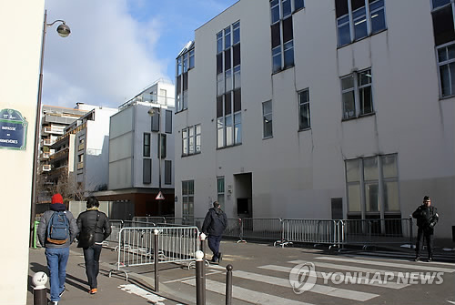 | △ 테러당한 주간지 '샤를리 에브도' 앞 지나는 시민 (파리=연합뉴스) 박성진 특파원 = 프랑스 시민이 3일(현지시간) 파리에 있는 주간지 '샤를리 에브도' 건물 앞을 지나고 있다. 이 건물 앞 거리는 지난달 7일 이슬람 극단주의자의 주간지 테러 이후 출입이 통제됐다가 이날부터 다시 열렸다. |
