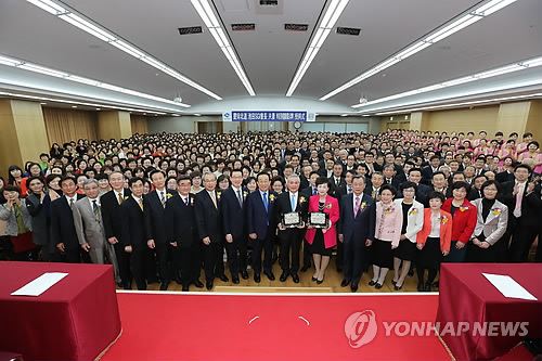 | △ 경북도, 이케다 SGI 회장 부부에게 특별현창패 (대구=연합뉴스) 경북도는 세계 평화에 진력하고 한일 우호를 위해 용기 있는 행동을 펼친 이케다 SGI 회장 부부에게 특별현창패를 수여했다. 사진은 대구 동구 한국SGI 동대구희망문화회관 대강당에서 열린 수여식. 현창패는 한국SGI 이사장이 대리 수상했다. 2015.2.10 haru@yna.co.kr |