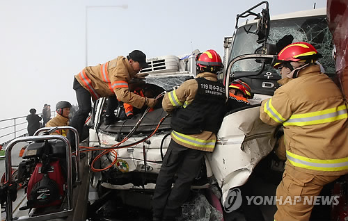 (인천=연합뉴스) 배상희 기자 = 소방당국은 11일 영종대교 100중 추돌 사고로 사망자 2명과 부상자 65명이 발생했다고 밝혔다.