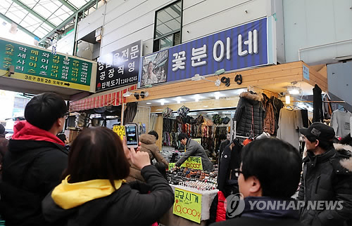 | △ 영화 '국제시장' 속 주인공의 가게인 '꽃분이네' 앞에서 관광객들이 기념촬영하고 있다. (연합뉴스 자료사진) |