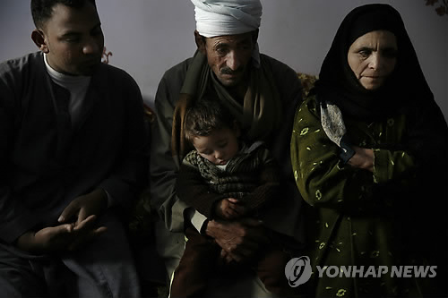 | △ IS, 이집트 콥트교도 21명 '참수' (AP=연합뉴스) 1개월여 전 리비아의 시르테에서 수니파 무장조직 '이슬람국가'(IS) 분자들에 납치된 이집트 콥트교도 21명 중 말락 이브라힘의 가족들이 14일(현지시간) 카이로 남부 시르테의 집에서 찍은 사진. |