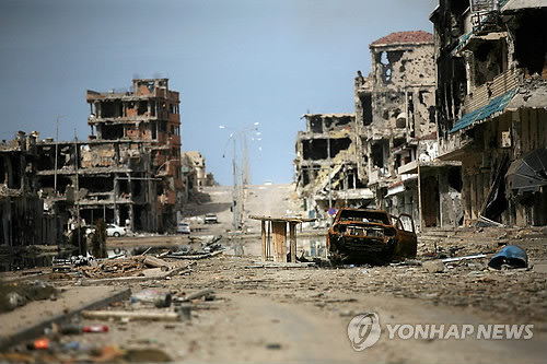 | △ 리비아를 철권통치하던 카다피 정권이 무너진 뒤 이어진 내전으로 폐허로 변한 시르테 전경. 이 사진은 2011년 10월22일 촬영됐다. (AP=연합뉴스 자료사진) |