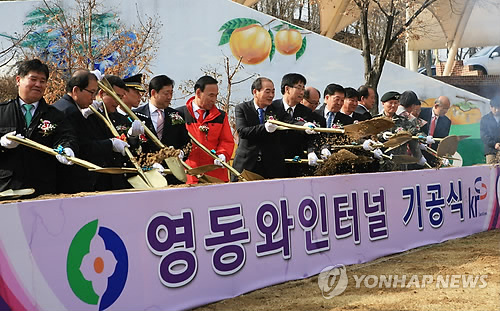 | △ 안전성 논란 휩싸인 영동 와인터널 (영동=연합뉴스) 박병기 기자 = 충북 영동 용두공원에 조성되는 와인터널이 뒤늦은 안전성 논란에 휩싸였다. 사진은 지난 3월 26일 기공식 장면. 2014.7.5 bgipark@yna.co.kr |