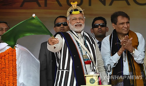 (뉴델리·베이징=연합뉴스) 나확진 홍제성 특파원 = 나렌드라 모디 인도 총리가20일(현지시간) 중국과 국경분쟁 지역인 동북부 아루나찰 프라데시 주를 방문해 개발을 약속하자 중국이 강하게 반발했다.