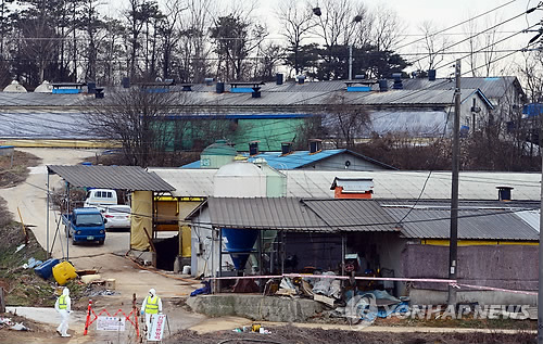 | △ 전국 최대 축산단지 홍성도 구제역 (홍성=연합뉴스) 김준호 기자 = 전국 최대 축산단지인 충남 홍성에서도 구제역이 발생해 축산 당국이 긴급 방역에 나섰다. 구제역이 발생한 홍성군 은하면 덕실리의 한 양돈 농가 전경.2015.2.7 kjunho@yna.co.kr |