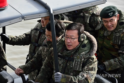 백승주 국방부 차관과 국방부 및 합동참모본부의 담당자들은 이날 고속단정(RIP)을 타고 주민들이 철거를 요구하는 한강하구 철책을 현장점검했다.