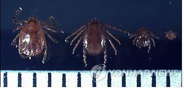 | △ '중증 열성 혈소판 감소 증후군'(SFTS)을 옮기는 '작은소참진드기'. 왼쪽부터 암컷, 수컷, 약충, 유충. (연합뉴스 자료사진) |