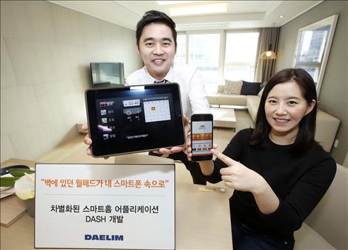 기존 홈네트워크 시스템은 거실 벽에 달린 월패드를 기반으로 서비스를 제공해 왔으나 대쉬는 스마트폰이나 태블릿PC만으로 가스·조명·난방 등을 제어하고 가스·전기 사용량을 확인할 수 있다고 대림산업은 설명했다.