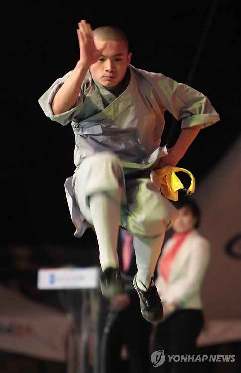 | △ 소림무술 보이는 승려 (연합뉴스 자료사진) |